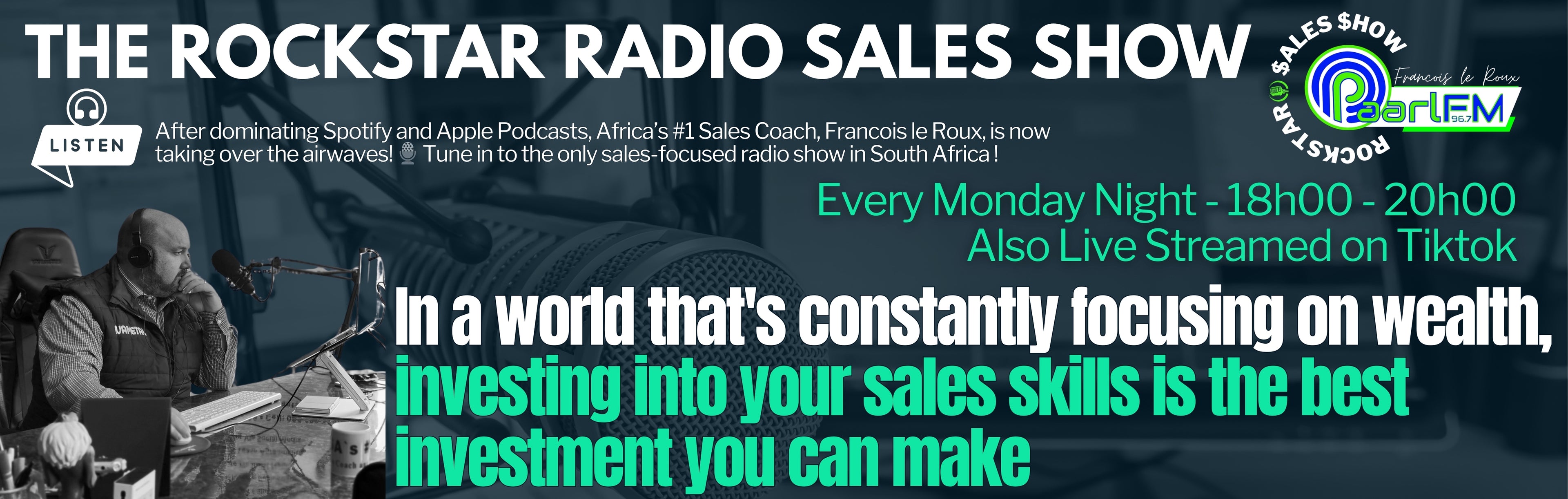 This is where Francois le Roux stands apart. As a CEO, serial entrepreneur, radio presenter on Paarl 96.7FM, and host of the highly successful Rockstar Sales Show on Apple and Spotify, Francois brings over 24 years of daily, hands-on sales experience, as well as a background of working with the best sales teams from multiple countries and over 5800 brands to the table. Recognised across the continent as Africa’s Best Sales Coach, his approach differs significantly from the majority of sales coaches who rely predominantly on theory and outdated frameworks.